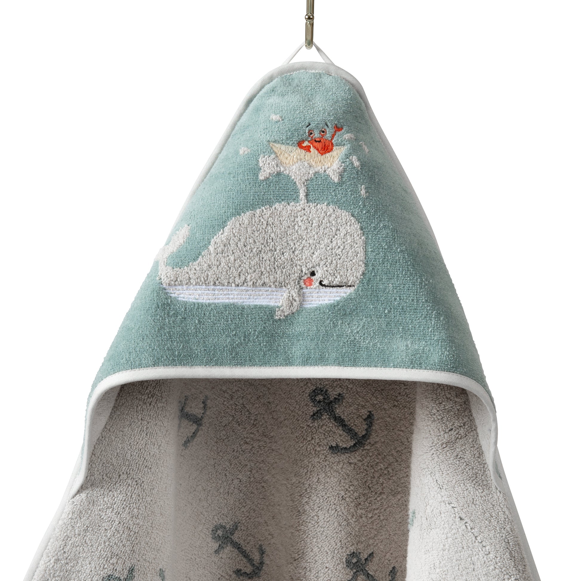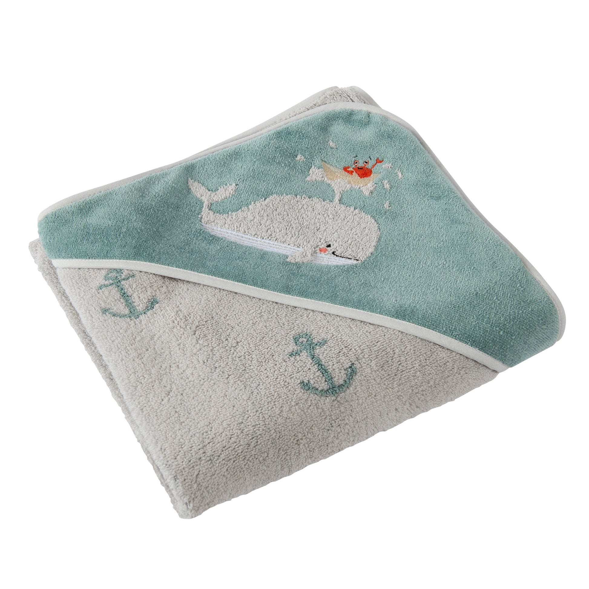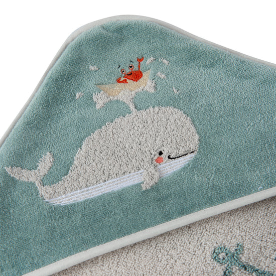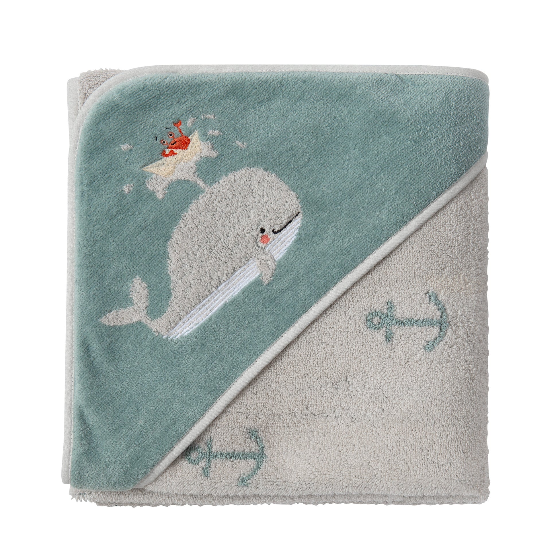 Wickeltuch aus Velours aus 100 % Bio-Baumwolle mit Walmuster-Stickerei – 80 x 80 cm