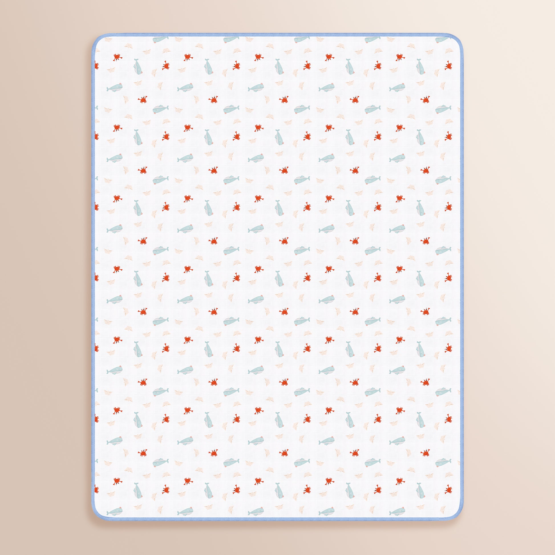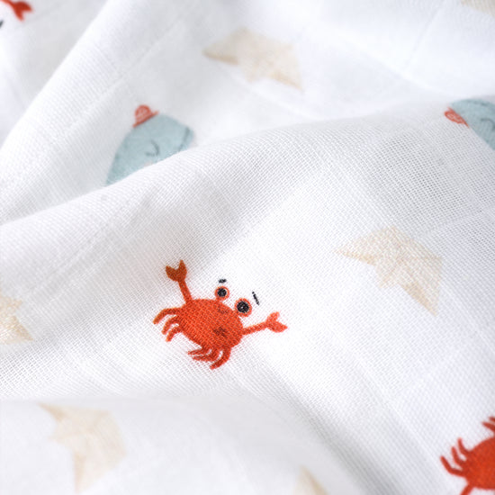 Unsere Decken, jede mit unseren speziell entworfenen Mustern, bestehen aus doppellagigem Musselin. Sie bestehen aus atmungsaktivem, weichem und saugfähigem Musselin aus 100 % Baumwolle für einen gesünderen Schlaf. Für die Kanteneinfassung wird hochwertige gerippte gekämmte Baumwolle verwendet.
