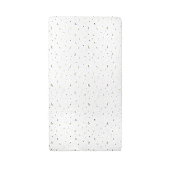 Baby-Spannbettlaken-Set aus 100 % gekämmter Baumwolle. Maschinenwäsche bei 40 Grad mit ähnlichen Farben. Keine Bleichmittel verwenden. Nicht chemisch reinigen. Trocknen im Trockner bei niedriger Geschwindigkeit.