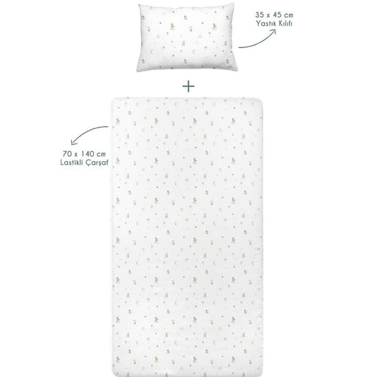 Das Casadora Baby Spannbettlaken-Set aus 100 % Bio-Baumwolle hat dank seines gekämmten Stricks eine weiche, bequeme und baumwollähnliche Textur. Der gekämmte Strick ist dehnbar, passt sich dem Bett leicht an und bietet zusätzlichen Komfort. Es besteht aus atmungsaktivem, weichem Baumwollstoff aus 100 % Baumwolle und bietet Ihrem Baby einen gesunden Schlaf. Dank des Gummizugs passt es sich dem Bett problemlos an und ist benutzerfreundlich. Breite und Länge des Lakens betragen 70 x 140 cm, die Höhe 20 cm. Die Kissenmaße betragen 35 x 45 cm. Dieses OEKO-TEX-zertifizierte Produkt enthält keine gesundheitsschädlichen Chemikalien. Es reizt die Haut nicht und enthält keine allergenen Substanzen. Hergestellt gemäß internationalen Qualitätsnormen und -standards. Es bietet Ihrem Baby einen sicheren und gesunden Schlaf.