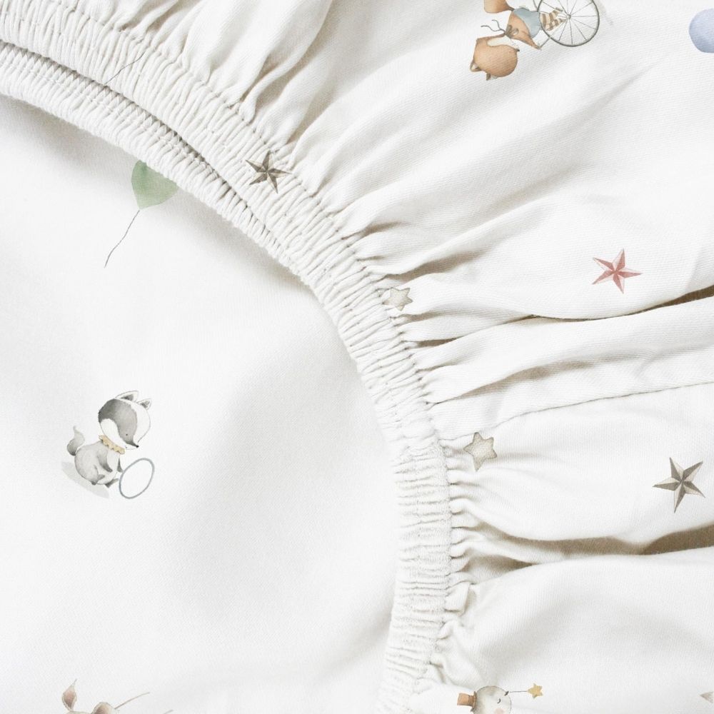 Circus Baby-Spannbettlaken-Set aus 100 % gekämmter Bio-Baumwolle – 70 x 140 cm + 35 x 45 cm