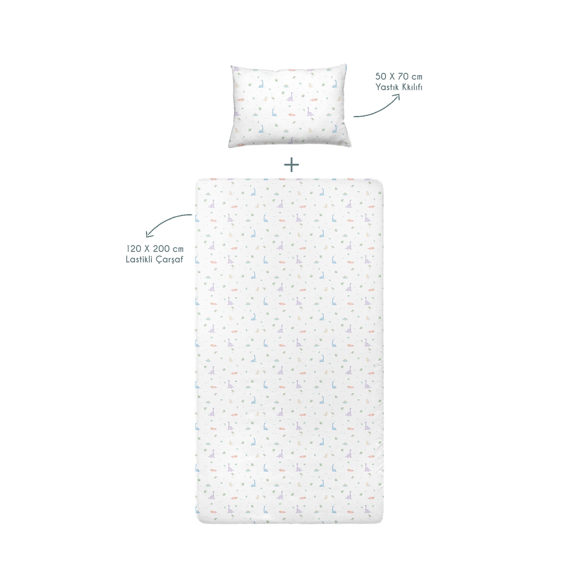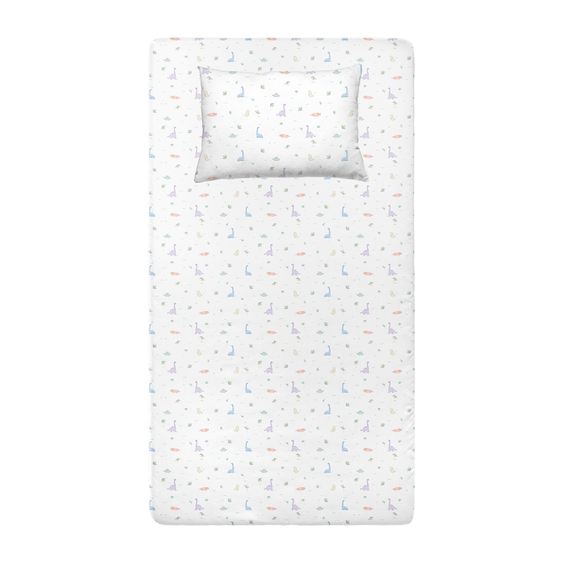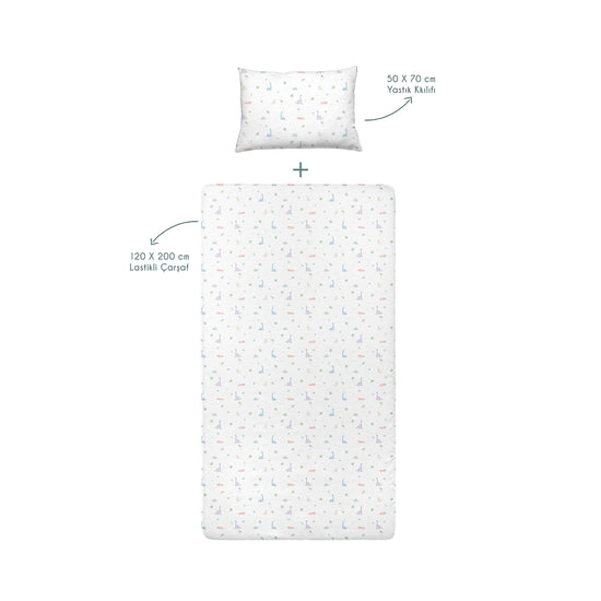 Dino Spannbettlaken-Set, 100 % Bio-Baumwolle, Satin, 120 x 200 cm + 50 x 70 cm