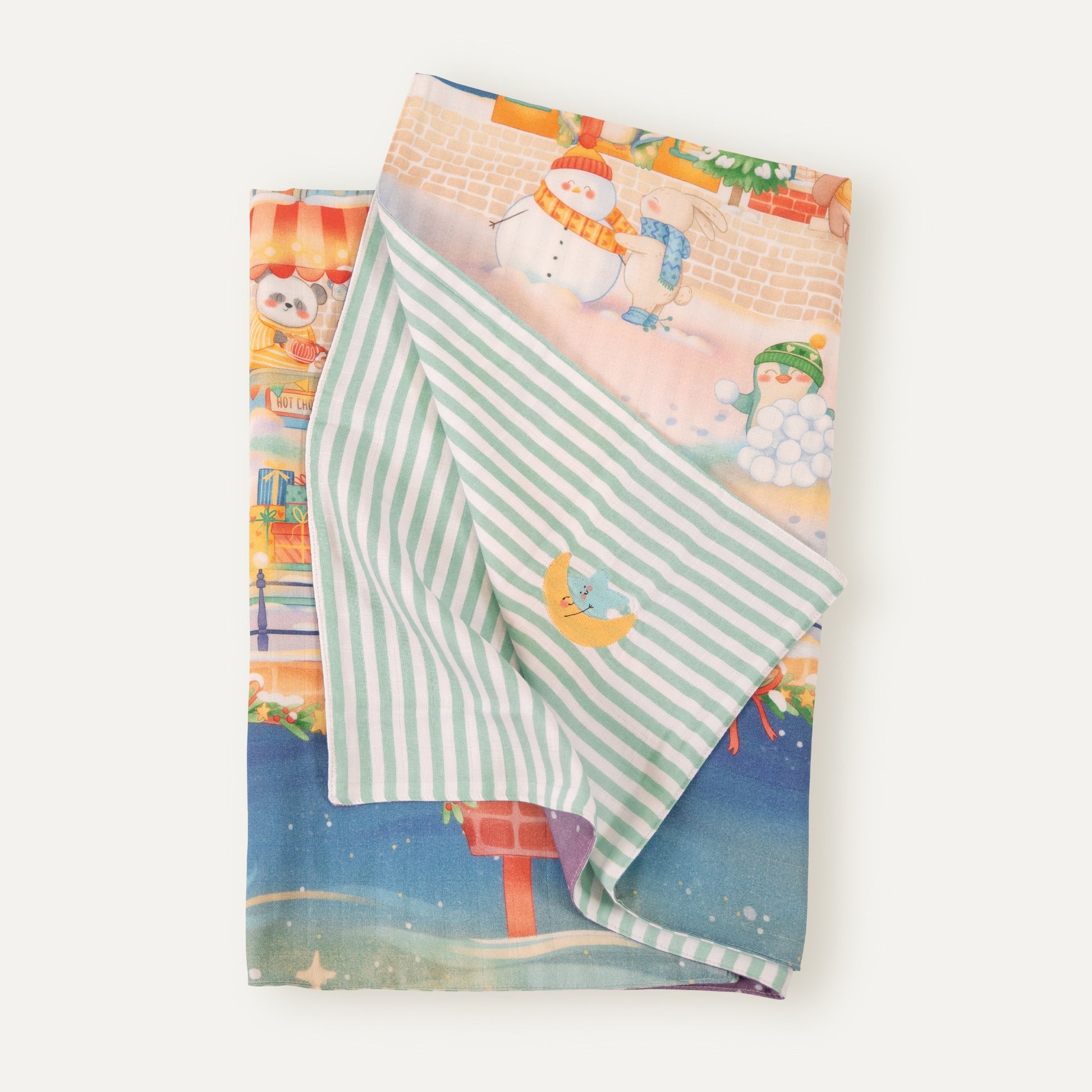 Bebek ve çocuklarınız için tasarlanan çift taraflı müslin örtümüz, 100 x 100 cm geniş ölçüsüyle pratik kullanım sunar. %100 organik pamuk yapısı ve kalın dokusuyla cilde mükemmel bir yumuşaklık hissi verir. Emzirme, kurulama veya alt değiştirme anlarında en büyük yardımcınızdır.