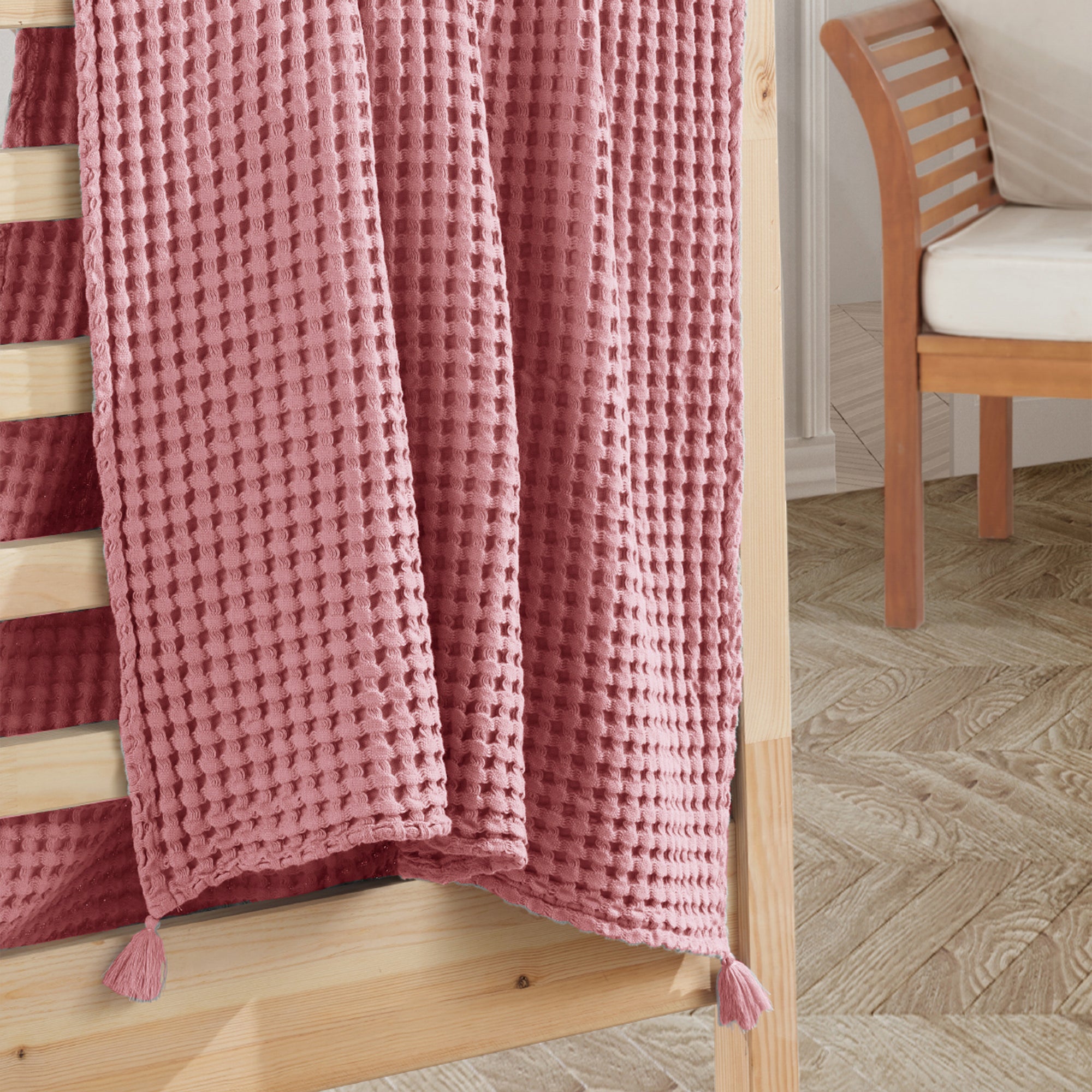 Waffle Pembe %100 Organik Pamuk Tek Kişilik Pike 160 x 220 cm