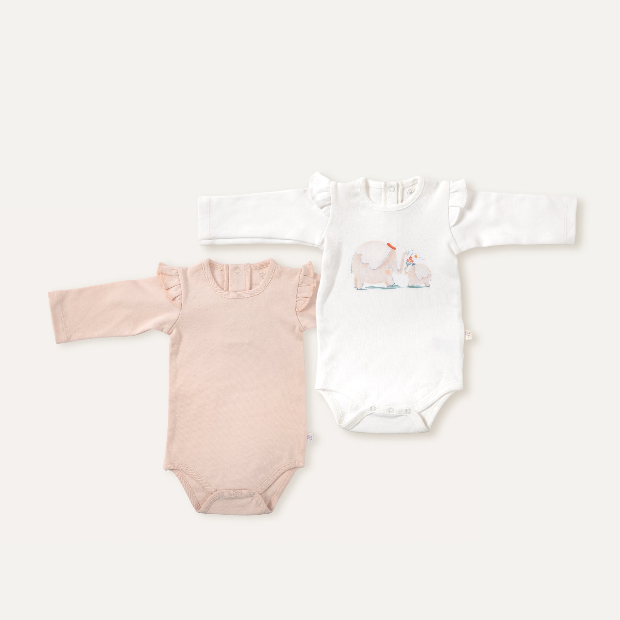 2'li %100 Organik Pamuk Bebek Fırfırlı Uzun Kollu Body Seti