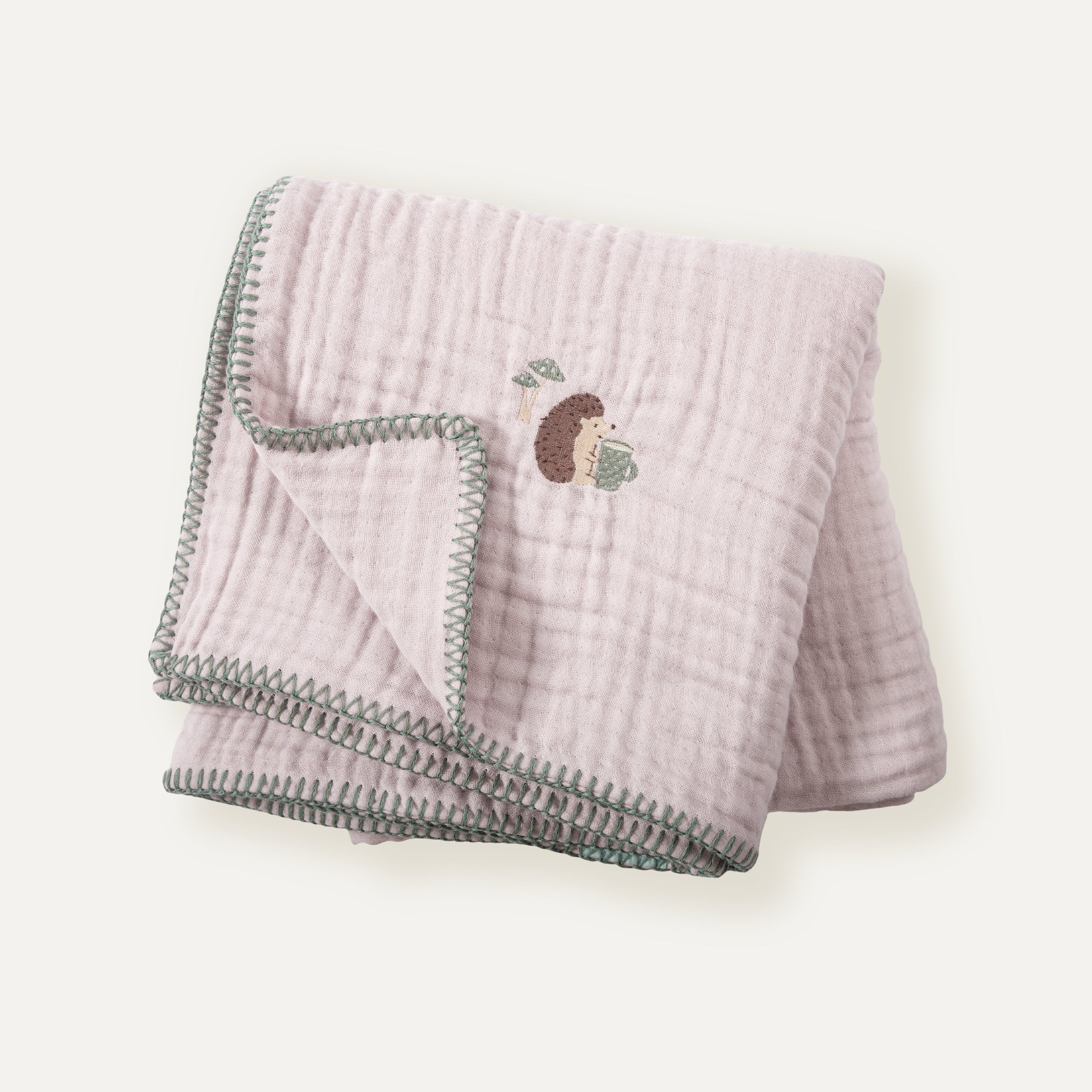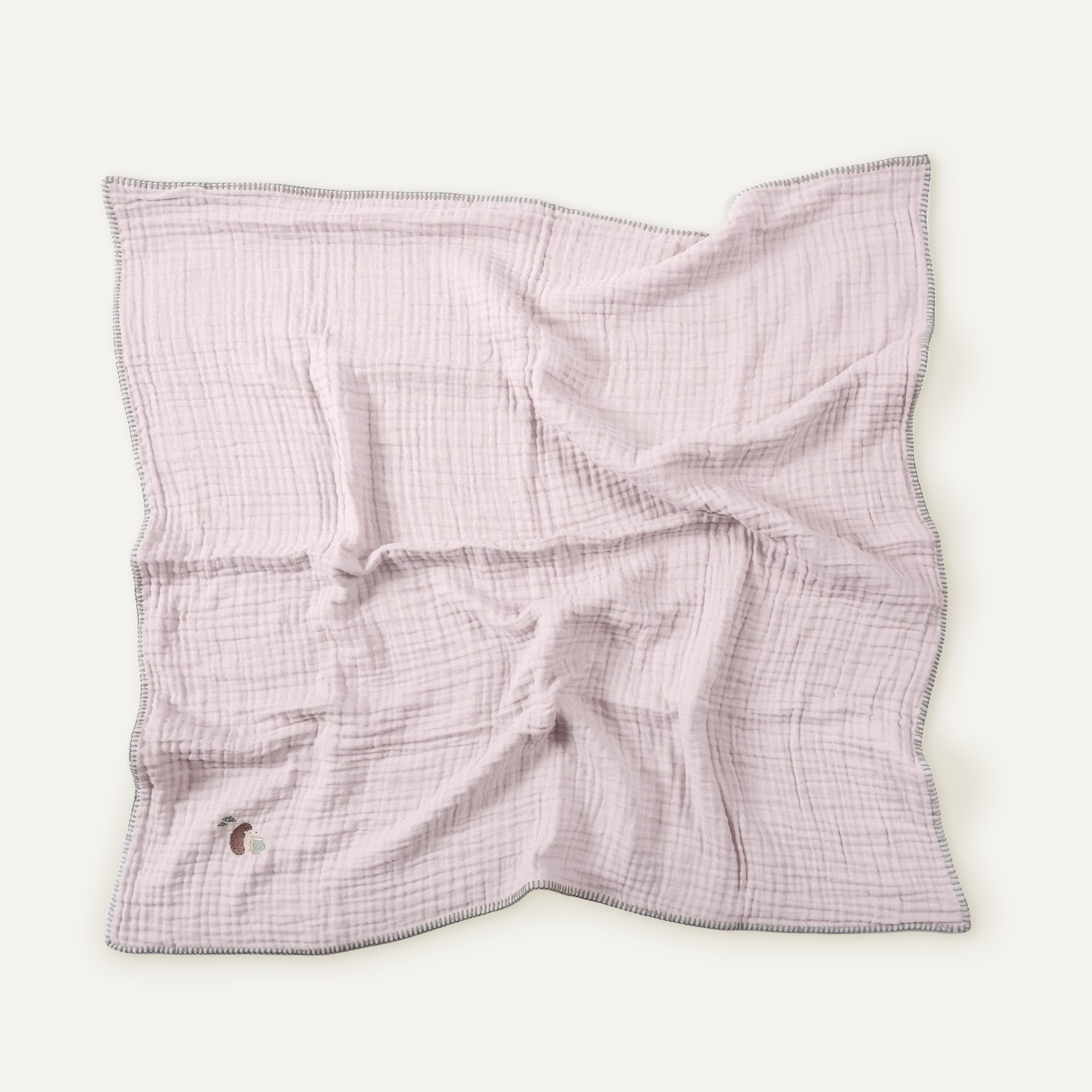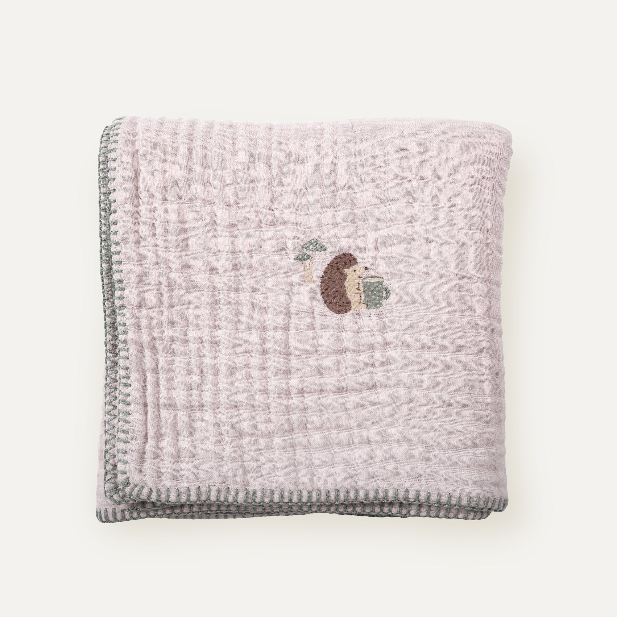%100 Organik Pamuk Kirpi Nakışlı Çoban Dikişli Müslin Battaniye 100 x 100 cm