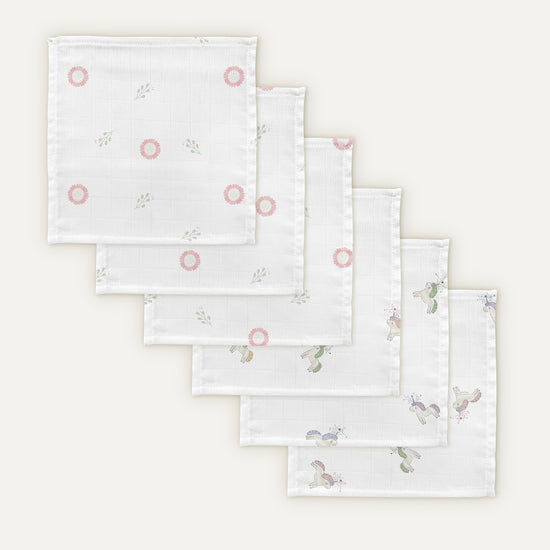 100% Pamuk Müslin 6'lı Ağız & Omuz Bezi Seti - 20x20 cm 6'lı Set