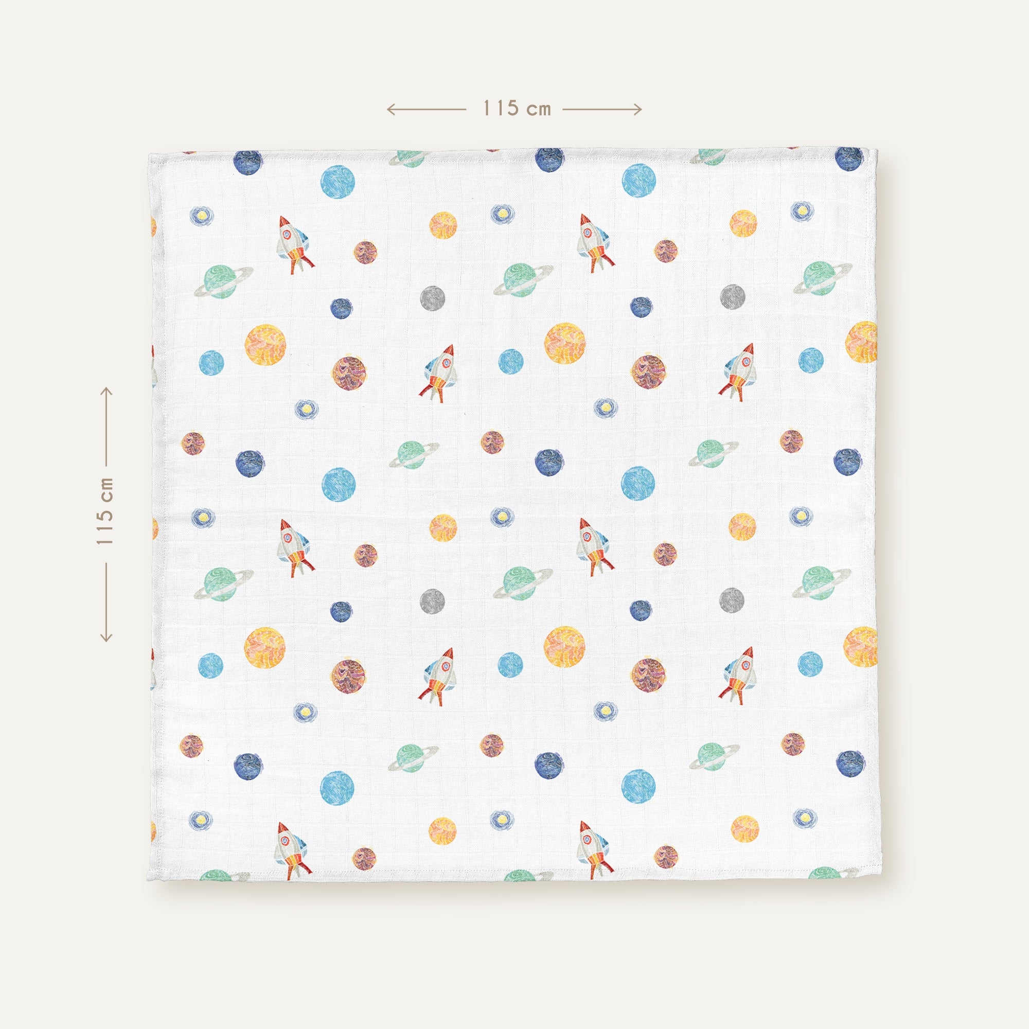Space Planet %100 Organik Pamuk Yıkanmış Müslin Örtü 115 x 115 cm