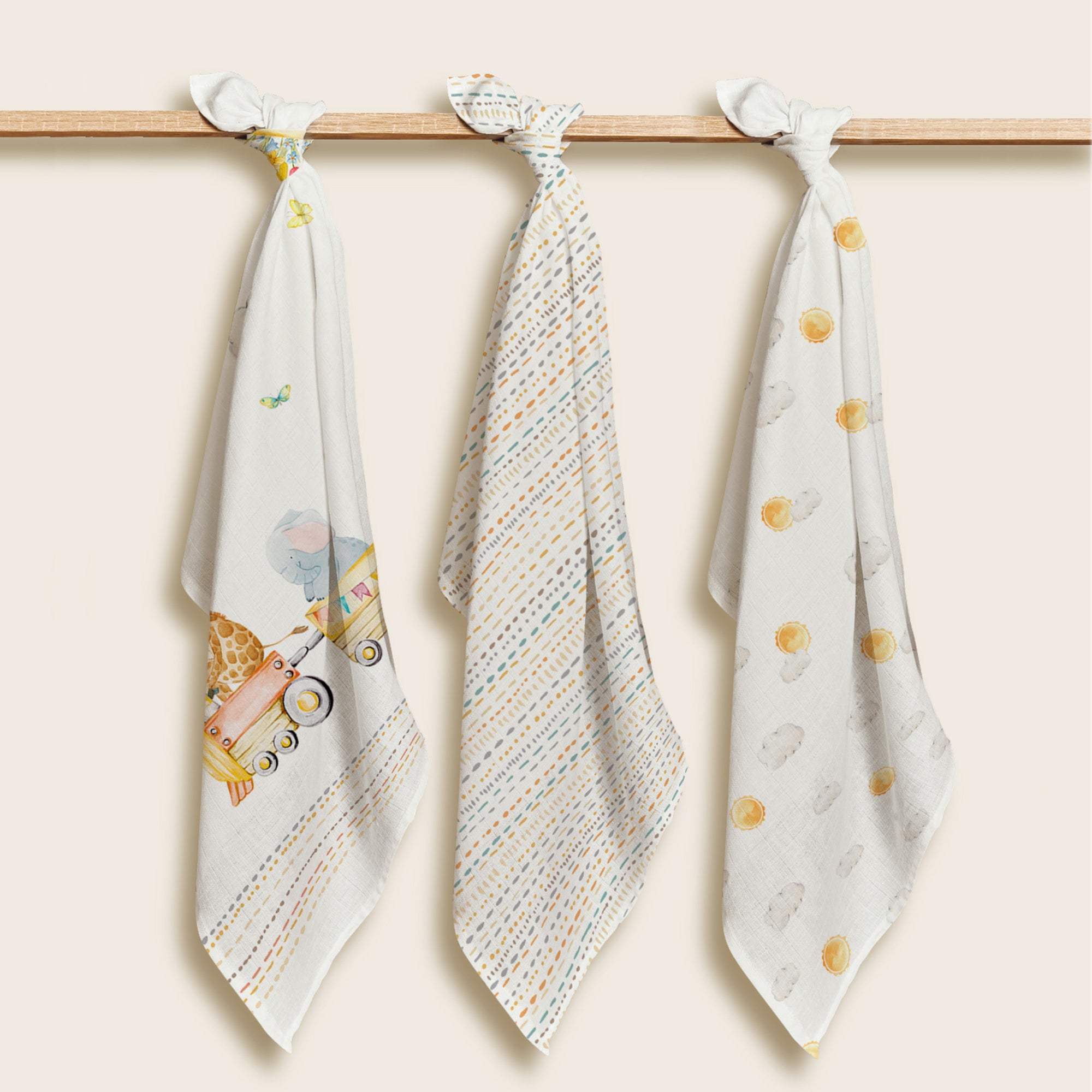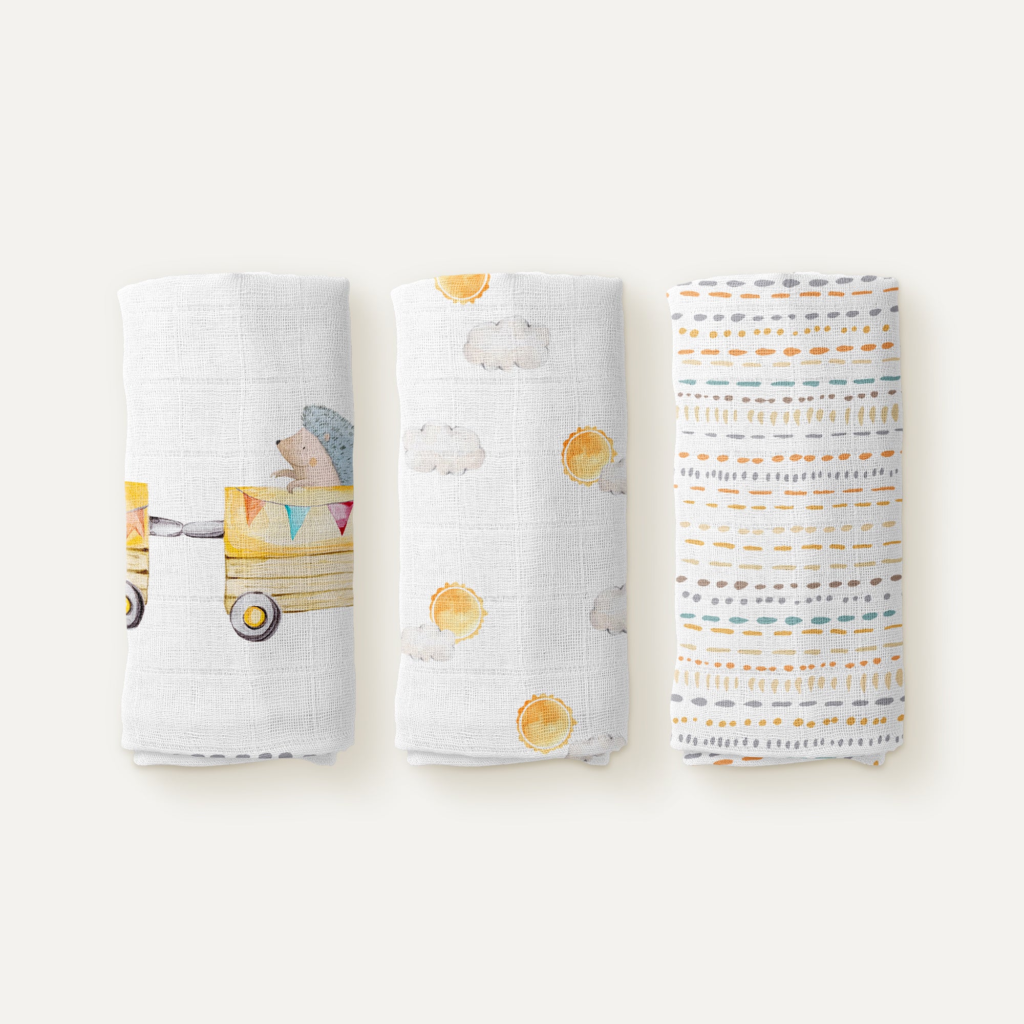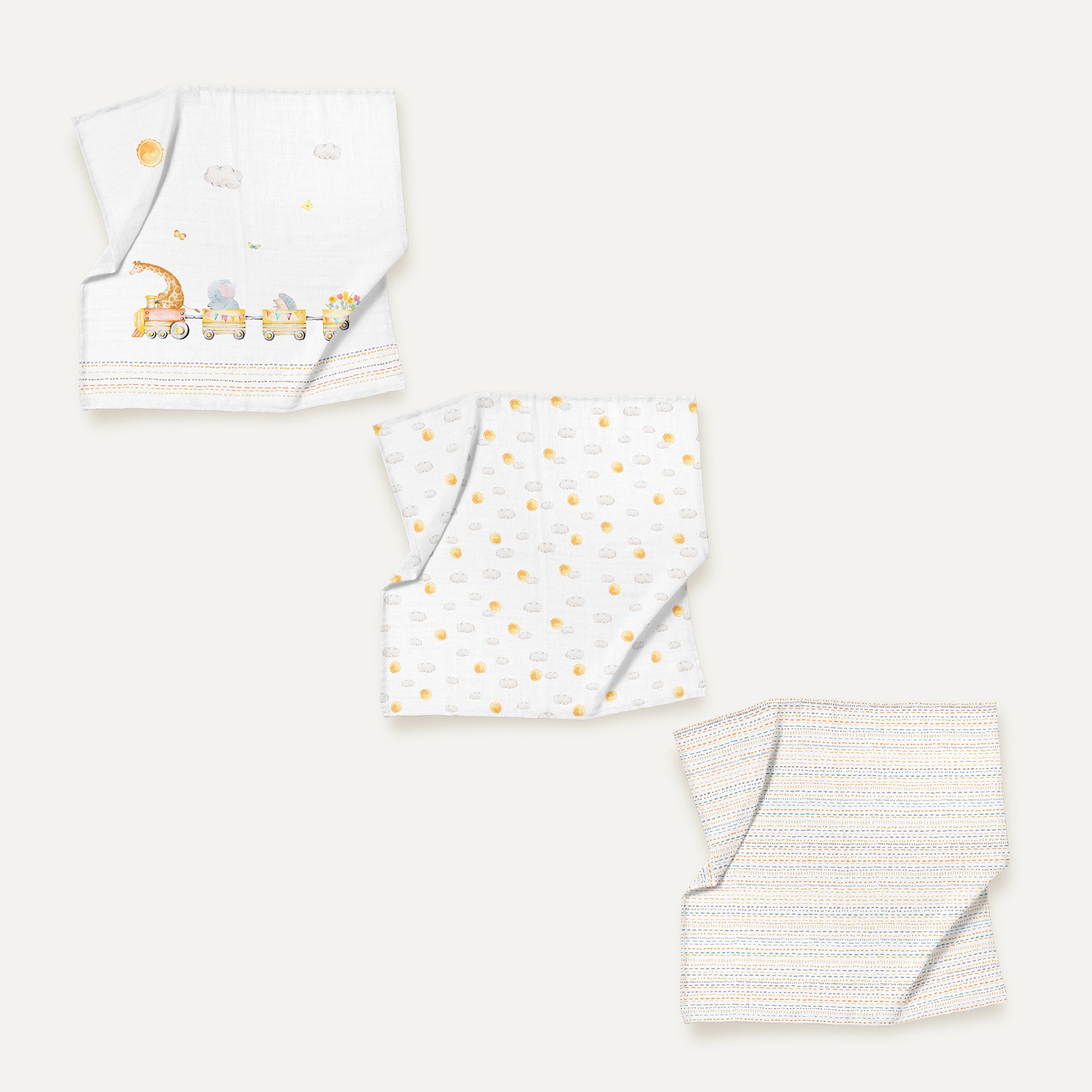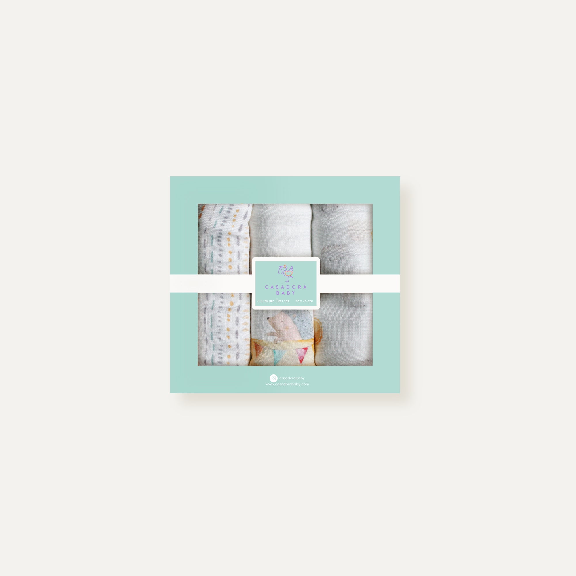 Loco Voyage %100 Organik Pamuk Müslin 3'lü Örtü Seti 70 x 70 cm